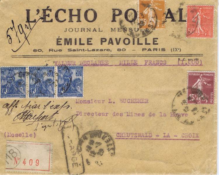 normal (0.50 F en 1929 pour une lettre de moins de 20 grammes) 2)