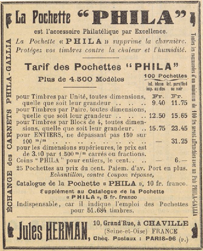 né en 1869, inventeur de la pochette Phila, établi à Chaville. Ce négociant