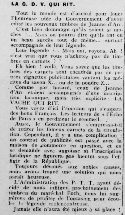 Dans l’Echo de la Timbrologie 813 du 15 novembre 1929