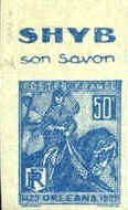 5 x 4 séparés un intervalle d’un timbre) qui n’a servi que pour ces carnets rotatifs (Bulletin philatélique du midi juillet-août 1957 repris en mai 1963). Le Dr Joany a mis en évidence la présence de 3 variétés constantes de ce galvano.